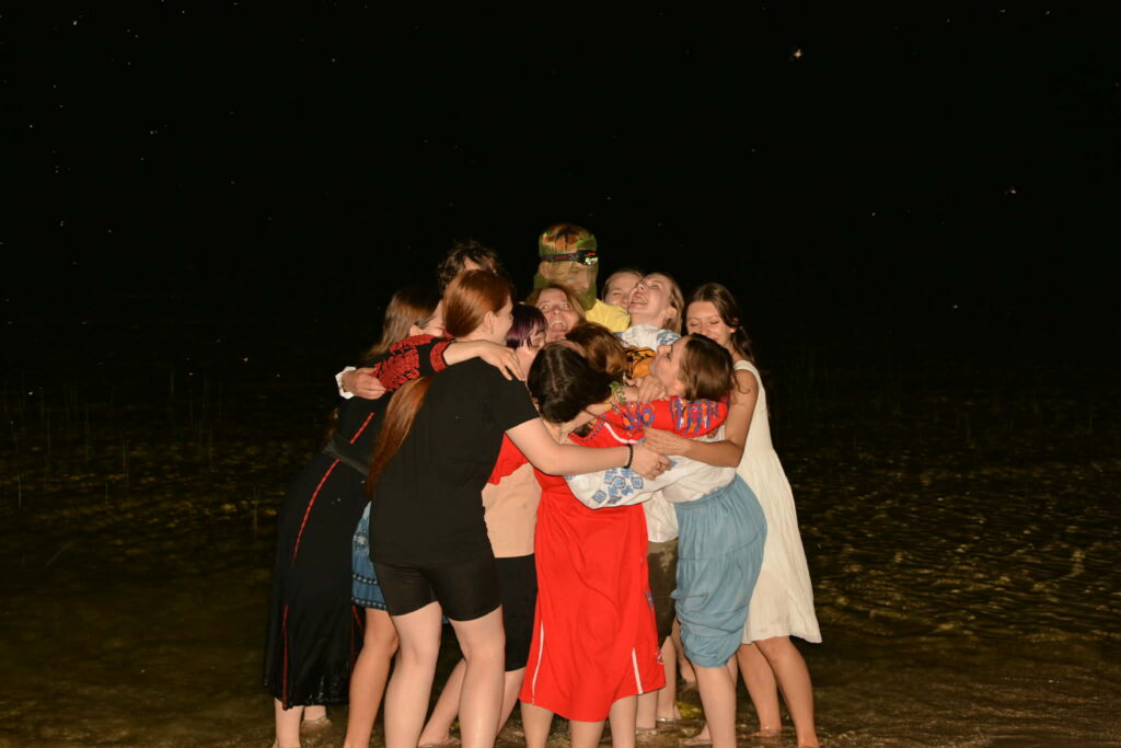 Поселилися в садибі в Холодному Яру. Це проблема, бо нас близько 50 людей, а садиби розраховані на сімʼю. Але там власники подружжя, яке організовує фестивалі. Перед нами був фестиваль байкерів. Це село, бездоріжжя, там своя атмосфера, готелів нема, але це дуже важливі історичні місця. Тож жили у великих кімнатах по 15-16 людей. Діти звикли до комфортних готелів по двоє в кімнаті, а тут отримали новий досвід. Зранку вийшли на величезне подвірʼя, побачили ліс, гору, поле, сцену. Ми там і на коні каталися, і спортивні змагання проводили. Шашлик нам готували на мангалі три метри довжиною. Комфортні готелі стираються з пам’яті. А ту ночівлю діти й зараз згадують як мою майстерність організатора, яскравий пригодницький спалах.