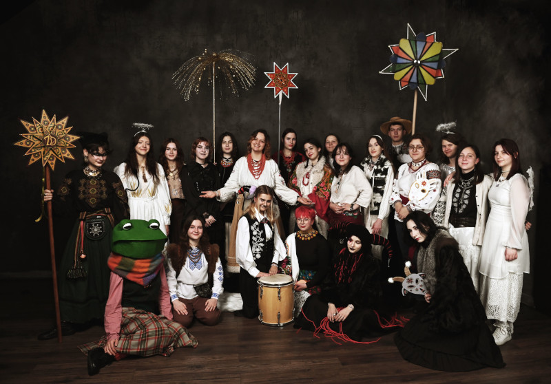 — Сама я київська й вертепами не розбалувана, —ділиться Марія. — Вперше повноцінний вуличний вертеп побачила років у 18 у Львові. Традиції повертаються, стають популярними. Я запропонувала дітям, пообіцяла, що знайду залу для репетицій, людину, яка допоможе нам виспіватися й підібрати пісні під нас. А ким бути у вартепі кожен вирішував сам. Тепер у нас є Чорт, Смерть, Циганка, кілька Кіз, Жаба. Багато прикольних образів, які хочеться роздивлятися.