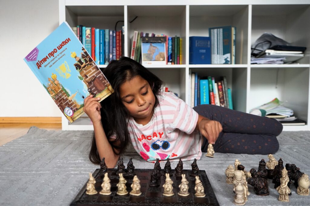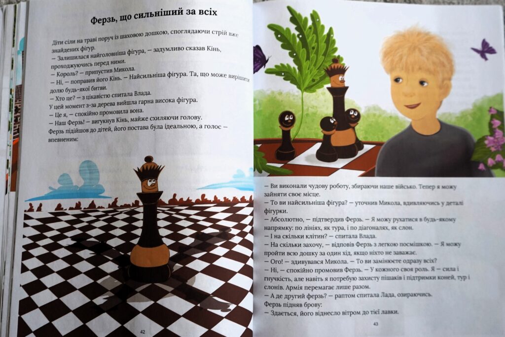 Мої діти грають давно і серйозно, вони вже поважні шахісти з досвідом і рейтингом, тож ця книга точно не для них. Але вона про них – про тих малюків, якими вони колись були, коли вперше знайомилися зі світом шахів. Діти – прототипи героїв маминої книжки.