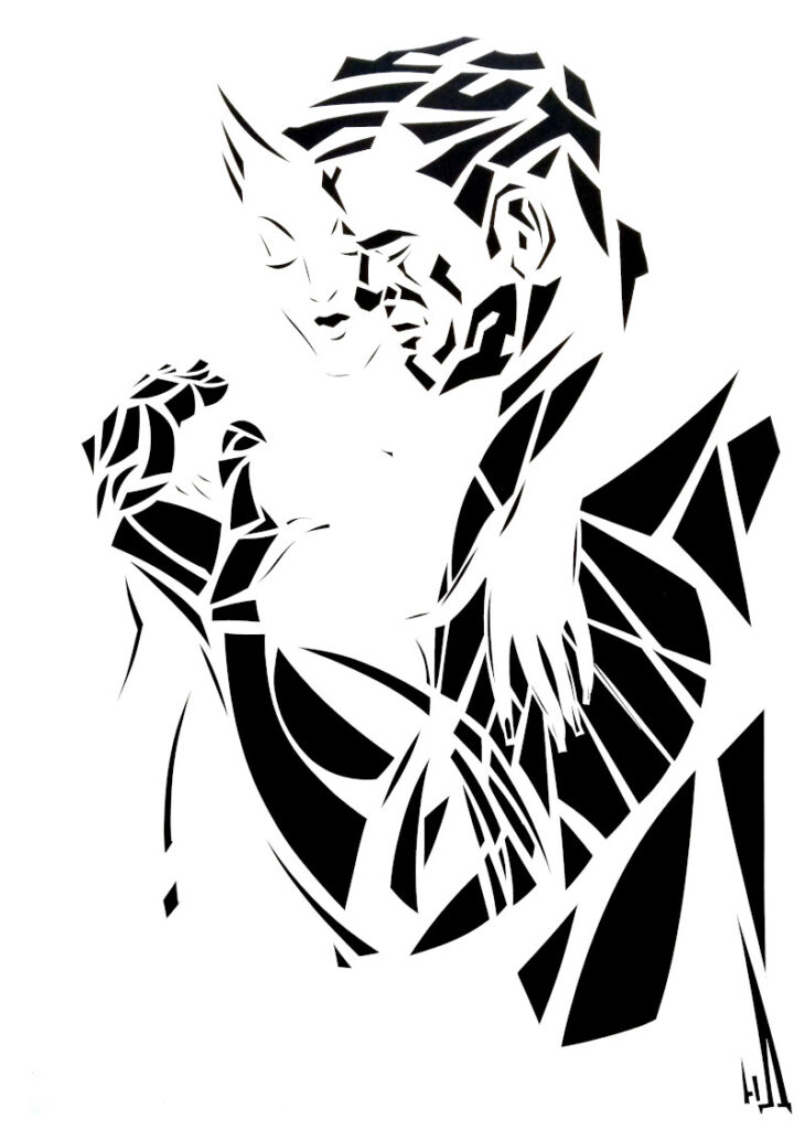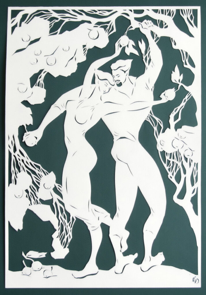 Ще одна знакова робота — «Створення», яка зараз у приватній колекції. Це історія ніби про руки Бога, який створює когось. На витинанці зображений момент, коли саме створення вже відбулося, але душа ще не встигла вселитися в тіло.