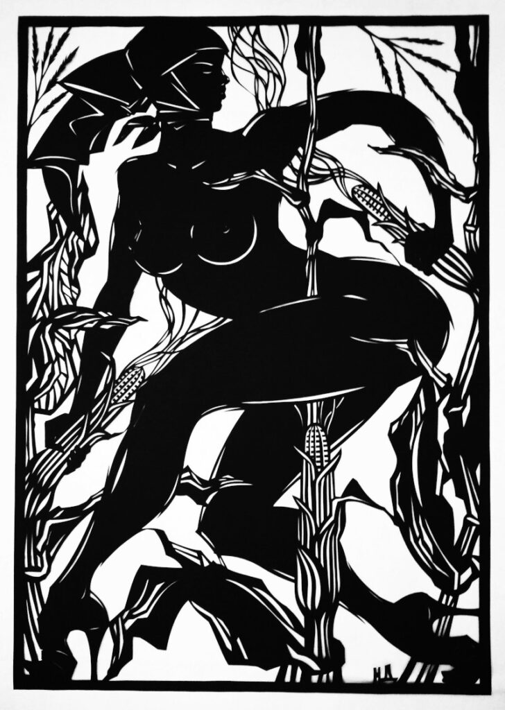 Є й іронічні сюжети, як-от «Збір кукурудзи», яку я готувала для мистецького проєкту «Попкорн». Це містичне пояснення того, звідки в українських жінок взялася любов до повітряної кукурудзи. Тут і чаклунство, і побутова магія. Технічно це дуже складна робота з високою деталізацією. Я не люблю пояснювати все до кінця — нехай глядачі самі роздивляються і шукають власні сенси.