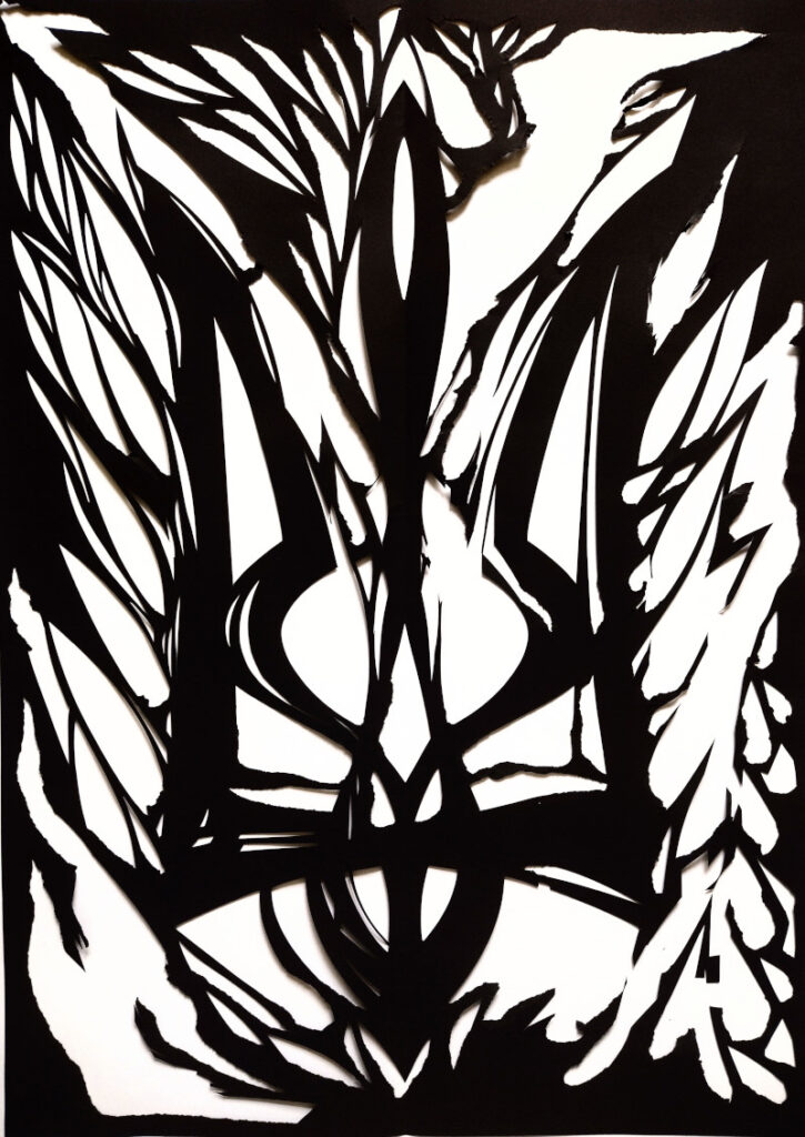 Також для мене дуже важлива витинанка «Воля». Це абстракція, у якій проглядають риси українського тризуба. Я створила її у 2023 році в еміграції. Зараз вона знаходиться в Литві, у колекції Національного музею.