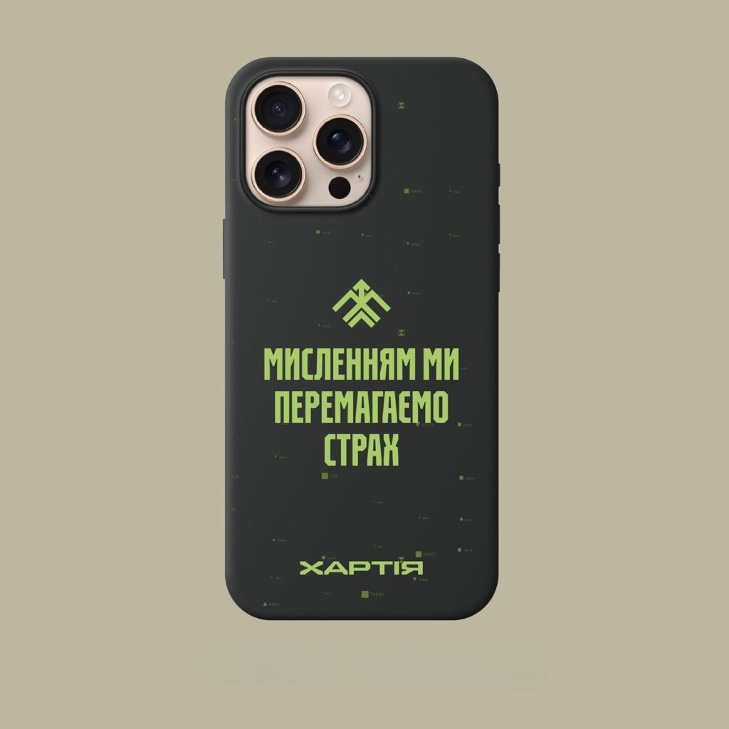 Каталог мерчу у «Хартії» відносно скромний: брелки, футболки, худі, стікери та чохли на телефон. Замовлення приймають через сайт.