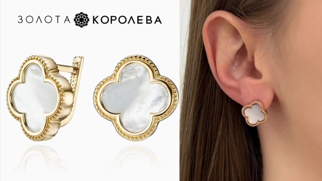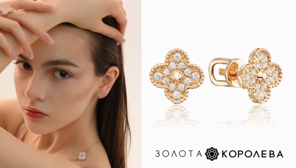 - Золоті сережки конюшина – класичний вибір, що вже може претендувати на звання еталона. Міцність, довговічність та практичність стають важливими факторами вибору таких моделей. Представлені у червоному, жовтому, білому золоті на смак на уподобання різних смаків.