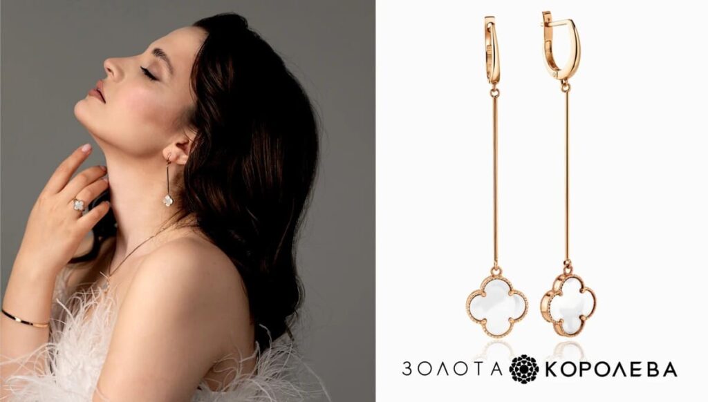 - Оптимальним вибором буде комбінувати чотирилисті сережки з подібними моделями на руки, шию та зап’ястя.