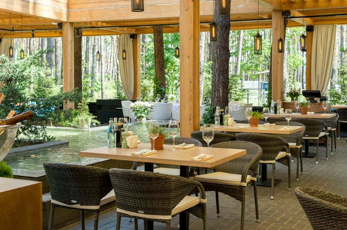 Колись авторка матеріалу дивувалася, як дізналася, що Пуща — це офіційна територія Києва, а не області. Дивувалася, бо Пуща-Водиця — це справжнісінький ліс нашого дитинства, куди всі їздили по гриби та заради прогулянок та повітря. Та і зараз здається, що час там зупинився, не завжди зрозуміло, якій зараз рік або навіть століття. Тож саме тут доречний такий класичний ресторан на березі озера з верандою, куди приємно повести родину, бабусю з дідусем, тата з мамою.