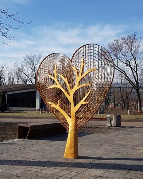 Комунальники до Дня закоханих відкрили у столичному парку «Аврора» арт-об'єкт — дерево-серце. Дерево — ще одна вигадка зеленбудівців Дніпровського району. Здається, вони просто обожнюють закоханих. В жодному іншому районі міста немає стільки локацій про коханнячко.