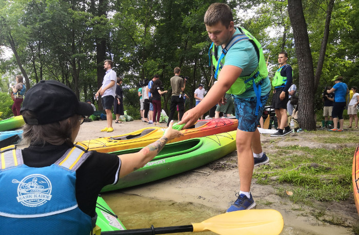 Для Киева это довольно новое и необычное явление, потому вызывает много интереса. Среди участников — люди плюс-минус 30 лет, хотя мы ожидали увидеть хипстеров следующего после миллениалов поколения. Короткий инструктаж, выдают мусорные пакеты (перчатки мы принесли с собой), один каяк на двоих, весла и плыви, куда хочешь.