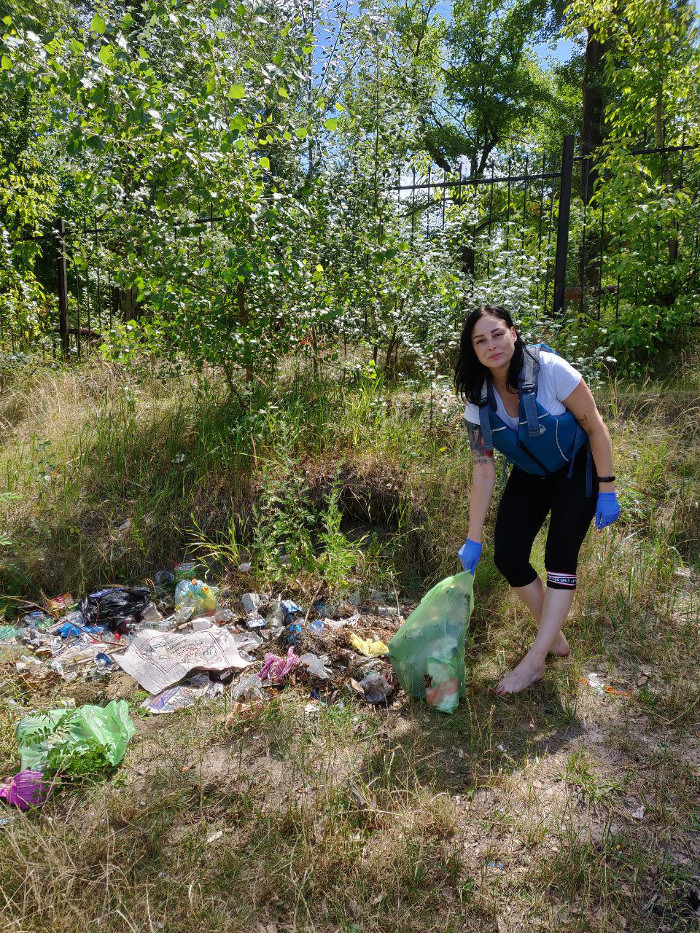 А все потому, что, вооружившись новыми пакетами, мы нашли у самой воды царь-свалку с доброй сотней бутылок и прочих пластиковых радостей. Она была так близко к воде, что после дождя все ее содержимое успешно уплыло бы прямо в Днепр. Там же нашли огромный черный пакет, в который понемногу перекладывали содержимое свалки, в четыре руки разобрали эту кучу примерно за полчаса, в какой-то момент от зловония мне стало плохо. Сделали перерыв и продолжили, пока доверху не набили пакет, а на небольшие остатки свалки натравили других плоггеров. Это навевает отчаяние: сегодня ты разобрал свалку, а завтра тут уже новая.