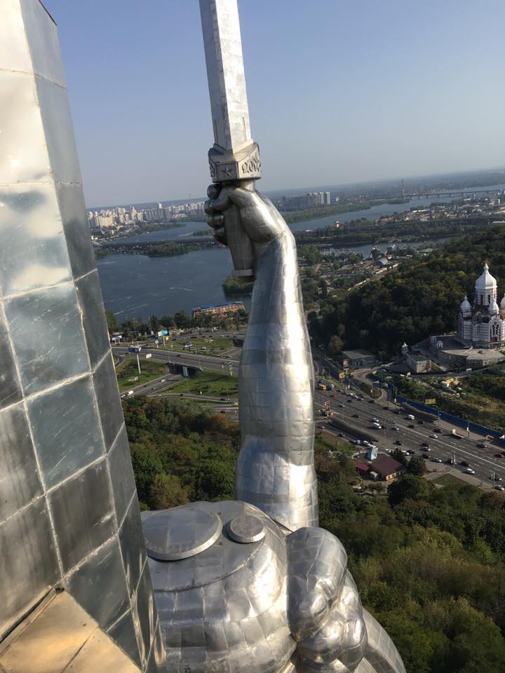 Родина-мать находится на территории комплекса истории Украины во Второй мировой войне — довольно гнетущее, кстати, место — с советских времен там ничего не изменилось.