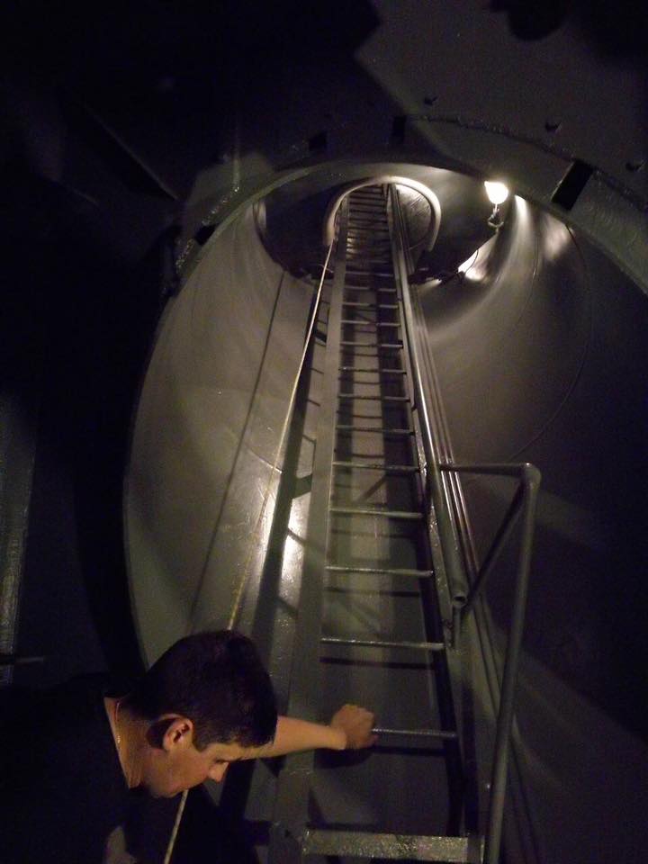 И тут начинается самое интересное. Вы расписались в журнале, на пояс цепляют страховочный трос, и дальше вам придется добираться по лестнице. В целом, вначале вас предупреждают, что для этой экскурсии неплохо бы обладать хоть минимальной физической подготовкой, и инструктор ее оценит на свой субъективный взгляд. Однако учитывайте, что упомянутая лестница железная и отвесная, подобная пожарным лестницам на домах, она проходит в руке статуи, вы довольно долго поднимаетесь по ней в узкой и темной металлической трубе, в которой вас ещё и заметно раскачивает.