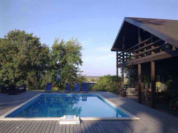 Есть двухэтажный дом на Осокорках — со своим выходом к озеру с рыбой. В доме две гостиные, спальня, два санузла, на каждом этаже душевая кабина. Кроме того, этот дом может похвастаться большой кухней с лежаками, немецкой сантехникой, электросауной, натуральным камином, пол отделан мрамором, гранитом и паркетом. Вообще дом сдается на длительный срок, но есть и опция летней аренды.