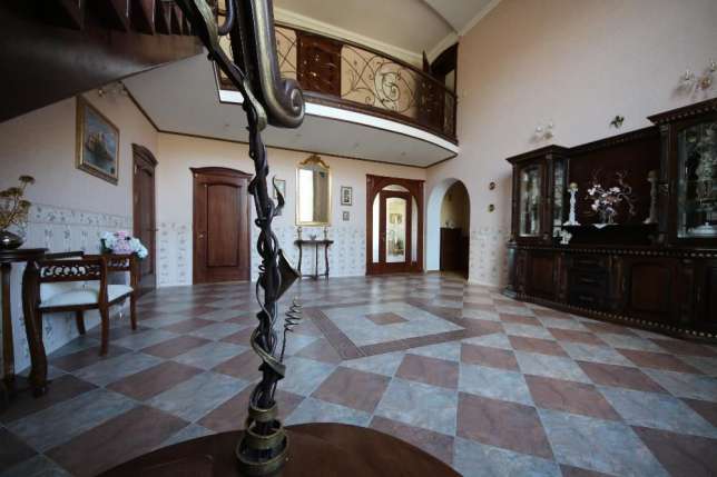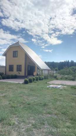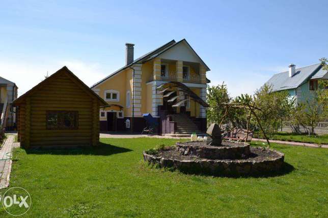 «Из огромного арочного окна (3х4 м) на первом этаже можно любоваться ольховой рощей, со второго этажа на западной стороне видны берега реки Ирпень, а восточные окна выходят на часовню в сосновом лесу. Дом окружен уютным садом с ландшафтным дизайном», – так расписываются все плюсы этого дома в объявлении.