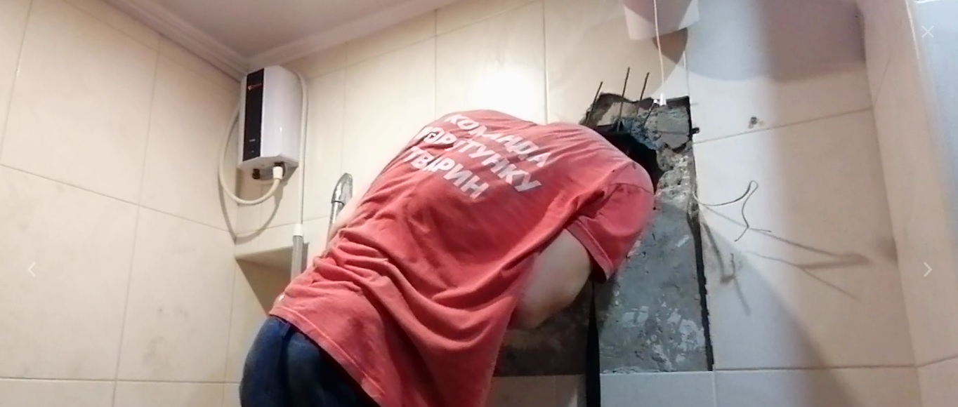 Містянка почула зі сторони покинутого двоповерхового будинку крики кошеняти. Рятувальники, що прибули на місце, виявили, що звук йде зсередини будівлі зі сторони горища. А коли піднялися, зрозуміли: кошеня нявкає з вузької щілини, де покатий дах дотикається до підлоги горища. За допомогою перфоратора рятувальники дібралися до початку вертикальної звивистої тріщини, а тваринка була на дні метрової щілини. Більше того, над самої тріщиною, куди неможливо дібратися, висіла велика каменюка, яка щосекунди могла звалилися.