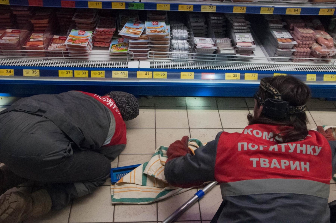 Один кіт не потребував допомоги, а навіть навпаки. Та все ж його вимусили покинути улюблене місце. У київському супермаркеті кіт оселився у мʼясному відділі. Адміністрація магазину залучила рятівників. Вони приїхали, коли в супермаркеті мало людей, та виявили, що «злодій» обрав місце за морозилкою, де зручніше смакувати ковбасою. Проте все ж йому довелося виселитися з місця котячої мрії.
