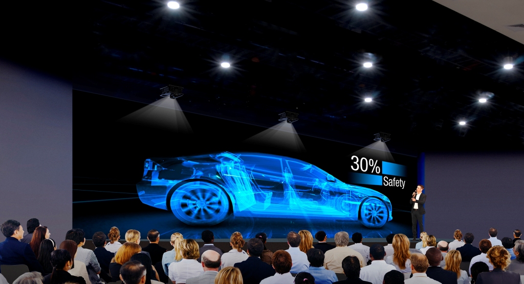 Например, в архитектурном 3D-меппинге необходимо «засветить» не только фасад здания, но и отдельные элементы: колонны, оконные ниши, дверные проемы, архитектурные элементы. При проекции на автомобиль: капот, крышу, багажник, колеса, боковые поверхности и т.д.