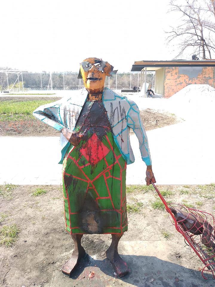 У столиці є кілька скульптур різних бабусь. Вони постійно стають жертвами нападу. Ту, що на Русанівці, останнього разу пошкодили серйозно — майже повністю розкурочили скульптуру. Авторка скульптури Анна Кисельова сказала, що відновленню бабуся не підлягає, тож вона більше ніколи не повернеться на набережну.