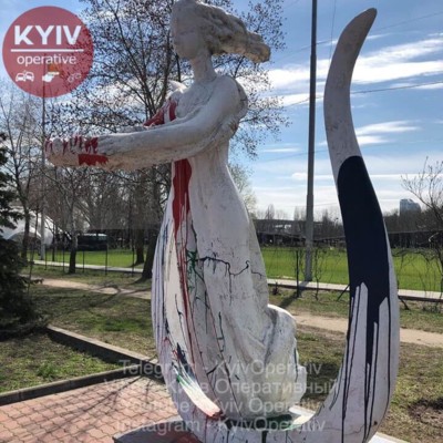 А наступного дня на тій самій Оболонській набережній облили червоною, чорною та зеленою фарбою одну з білосніжних скульптур на Алеї муз.