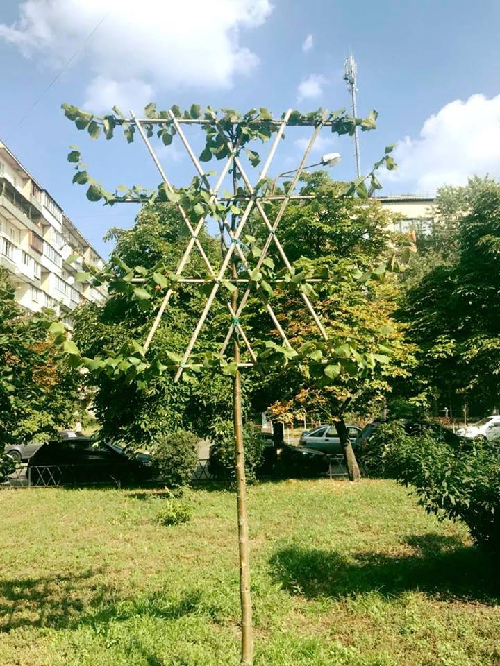 Киевзеленбуд создает треугольные липы. Технология называется «деревья на шпалерах». Ее коммунальщики опробовали на бульваре Бучмы. Хоть это и не новинка в озеленении, но подход требует очень кропотливой работы. В предприятии рассказывают, что таким способом можно придать деревьям любую форму, даже куба или веера.