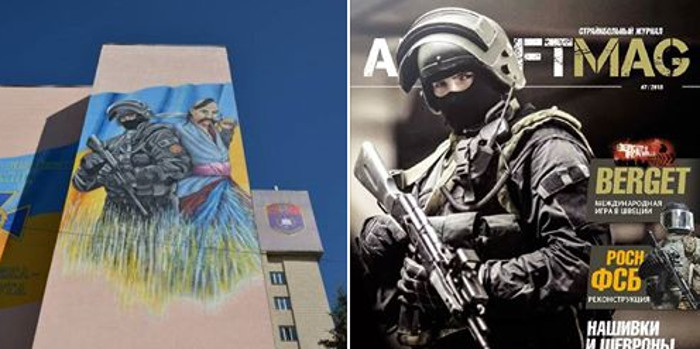 Ко Дню Независимости Украины на здании СБУ в Киеве нарисовали мурал, на котором изображены козак и боец на фоне национальной символики. Как указывают СМИ, если с козаком все нормально, то с воином — не очень: за основу взят боец спецназа ФСБ, которого реконструировала российско-белорусская страйкбольная команда РОСН.