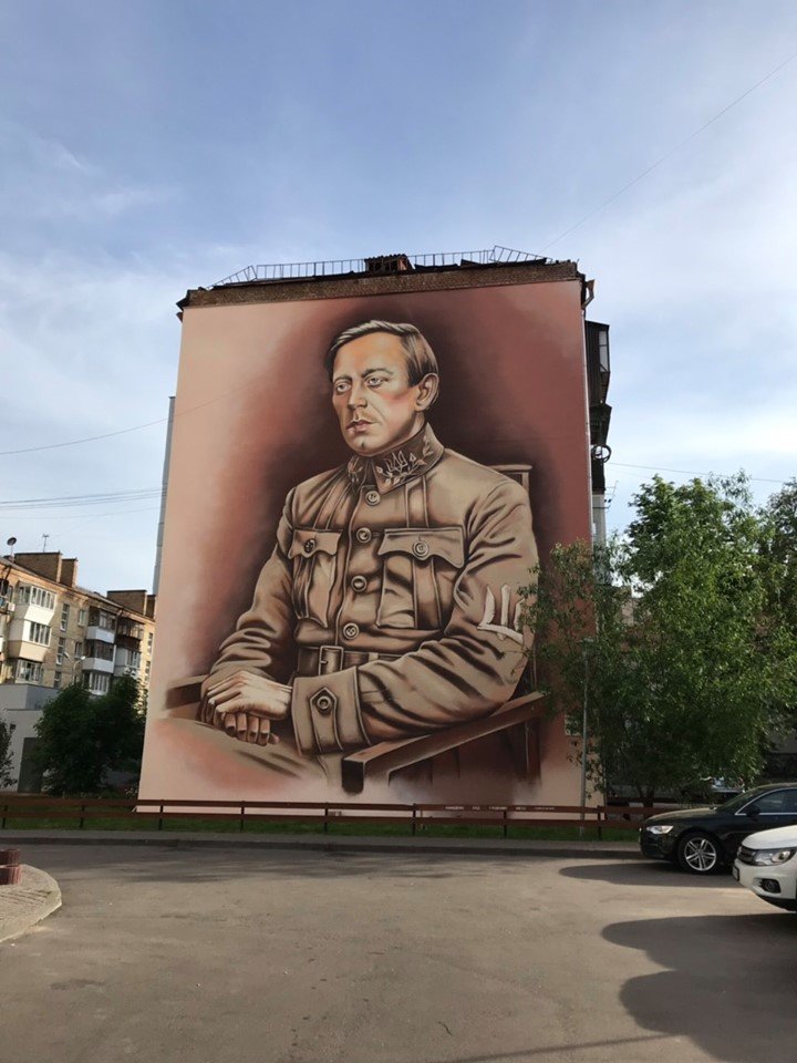 В Соломенском районе на улице Зои Космодемьянской 14/18 открыли мурал с изображением Симона Петлюры. Дату открытия — 22 мая — приурочили ко дню рождения Петлюры.