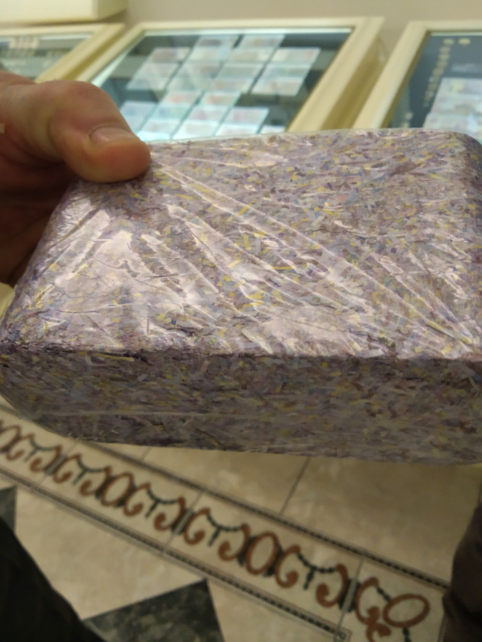 Рассмотреть веселый разноцветный брусок из утилизированных ветхих купюр, осознавая, что держишь в руках примерно 100 тысяч бывших гривен.