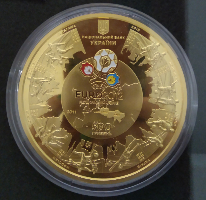 Найти самую большую золотую монету, выпущенную в Украине к финалу Евро-2012 тиражом всего 500 штук. За этой полукилограммовой пятисоткой уже вовсю охотятся коллекционеры.