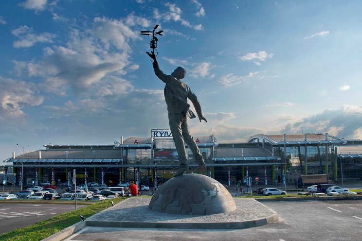 Бронзовый памятник авиаконструктору Игорю Сикорскому открыли в День украинской авиации возле аэропорта «Киев» (Жуляны). Ученый разработал и построил прототип вертолета. Автор скульптуры — Владимир Журавель, который создал памятник Илье Муромцу и детям-основателям Киева — Кию, Щеку, Хориву и Лыбеди. Как и предыдущие работы автора, эта скульптура получилась креативной — бронзовый Сикорский будто запускает в небо маленькую модель вертолета. Памятник установлен на постаменте в виде полусферы, на которую нанесена карта мира. Кстати, лопасти вертолета могут вращаться.