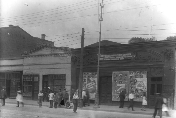 У кінці 1920-х років на цьому місці почав працювати кінотеатр «Буревестник». Він розташовувався у невеликій одноповерховій будівлі, а у залі вміщувалося не більш як півсотні глядачів. У 60-х тут провели експеримент: кінотеатр працював без контролера, тож контрольну частину квитка гість мав сам відірвати перед входом до залу. Як згадують історики, вхід був зі сторони вулиці, а вихід — у типовий подільський дворик з вбиральнею, водорозбірною колонкою та білизною, що колихалася на мотузках.