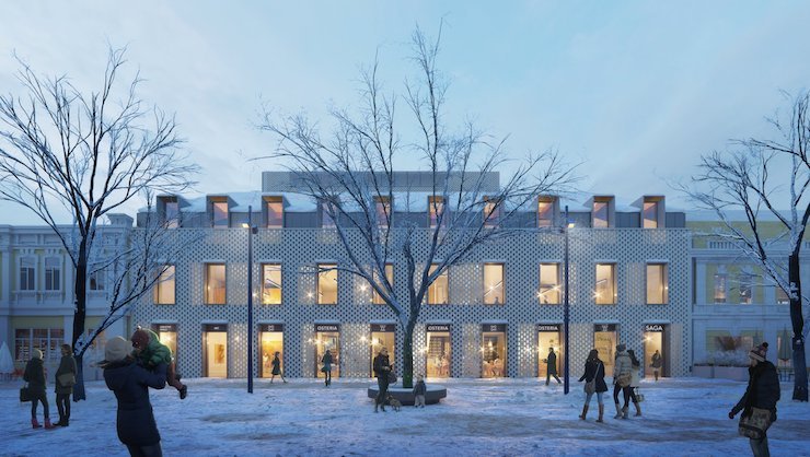 у будівлі розмістять ресторан, офіси, коворкінг та апартаменти, всередині — патіо;