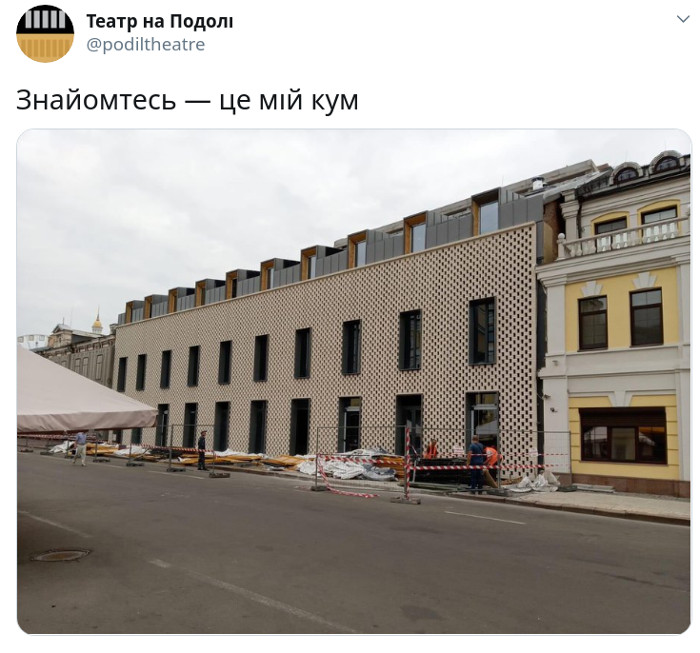 «Знайомтесь — це мій кум», — такий пост зʼявився у неофіційному акаунті Театру на Подолі. У дописі була фоточка — нова будівля на вулиці Сагайдачного. Будівля, яка вже сколихнула соцмережі, поділила киян на два табори та породила нові дискусії про належний вигляд столиці. Вікенд розбирався, що раніше було на тому місці, що являє собою нова будівля та хто причетний до її створення.