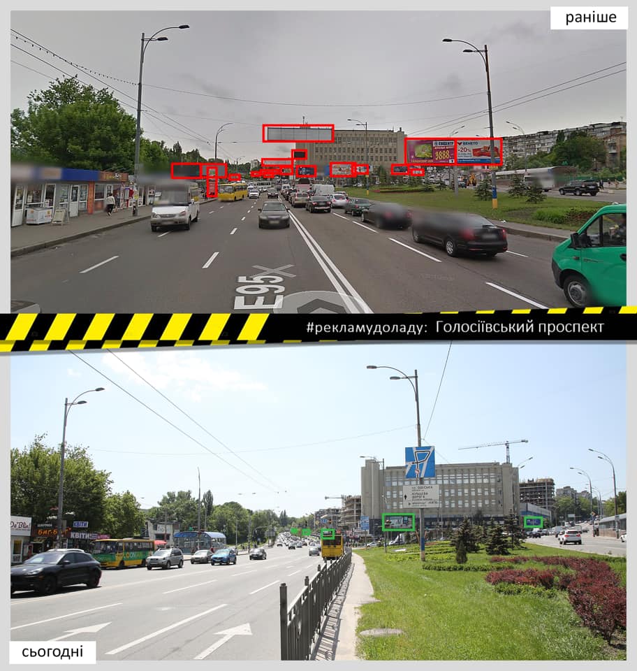 На Голосіївському проспекті привели до ладу рекламу: кількість конструкцій скоротилася з 77 до 30, а ті, що лишилися, втричі зменшилися у розмірах.