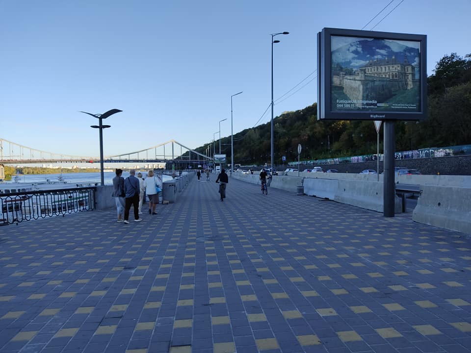 Пішохідну зону Набережного шосе відгородили бетонними блоками. Вочевидь, так тут намагаються припинити стихійне паркування.