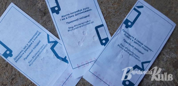 Працівники комунального транспорту проявили креаттив і додали за зворотню сторону квитків мотивуючі та веселі написи.