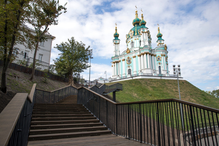 Від Андріївської церкви до Алеї художників і парку «Володимирська гірка» відкрили нові сходи. Конструкція аналогічна сходам, що торік відкрили від Пейзажної алеї до урочища Кожумʼяки: збірна металева конструкція з деревʼяними сходинками. У поруччя вмонтована LED-підсвітка. Вартість сходів становить майже чотири мільйони гривень, кошти виділили меценати.