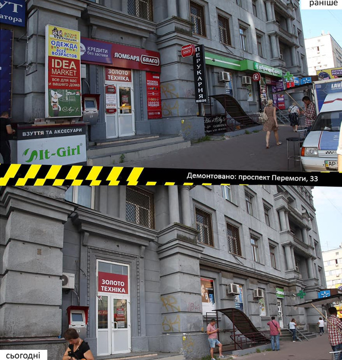 З будинку по проспекту Перемоги, 33 зняли 73 незаконні рекламні засоби.