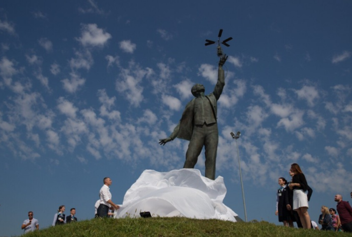 Біля аеропорту «Київ» імені Сікорського, що в Жулянах, відкрили памʼятник авіаконструктору Ігорю Сікорському. Скульптура встановлена на постаменті, що має вигляд напівсфери зі стилізованою картою світу. Автор — Володимир Журавель, який створив композицію на Поштовій площі «Діти, які запускають кораблики» та памʼятник Іллі Муромцю. Скульптуру виготовили на кошти меценатів, з бюджету грошей на нього не витрачали.
