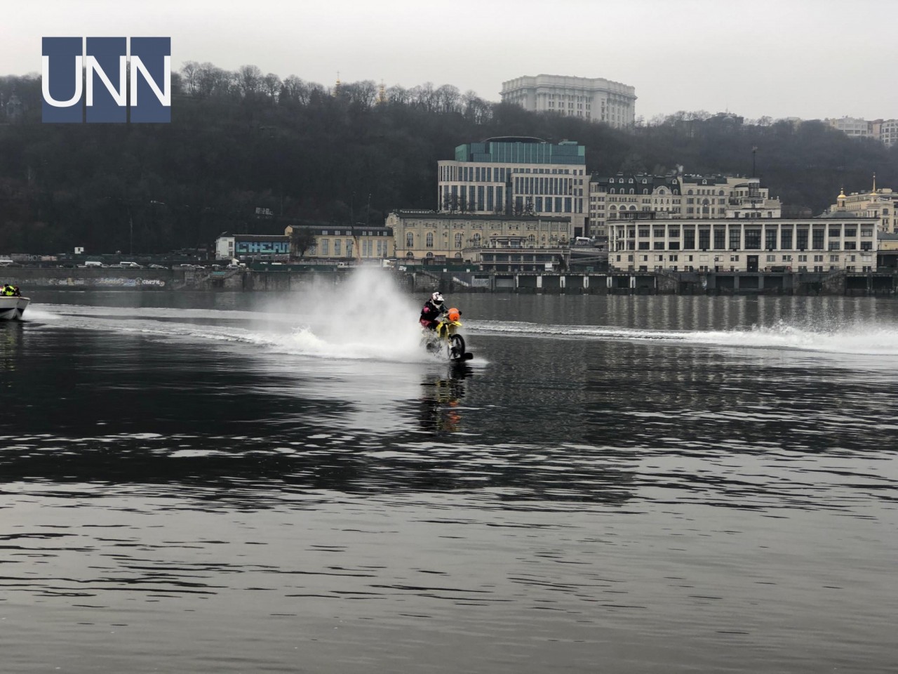 Каскадер Сергій Совяк проїхав по Дніпру до Труханового острова — 5 кілометрів зі швидкістю 60 км/год. Щоб утримати на воді, до мотоцикла прикріпили спеціальні водні лижі з пластику. Досягнення зареєстрували у Книзі рекордів України.