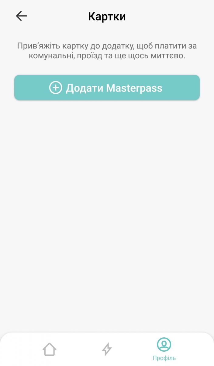 Ще в особистих налаштуваннях можна привʼязати картку MasterCard.