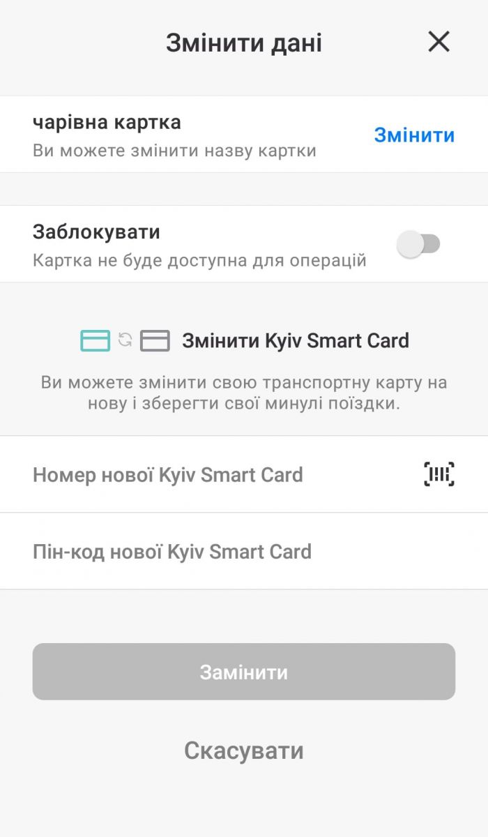 У разі втрати ви можете її заблокувати, аби ніхто не міг скористатися поїздками, та перекинути на нову картку невикористані поїздки. Але варто знати: щоб перекинути поїздки, треба не реєструвати на той же обліковий запис ще одну картку, а у режимі редагування вибрати опцію «змінити Kyiv Smart Card». Можна онлайн поповнити картку поїздками.