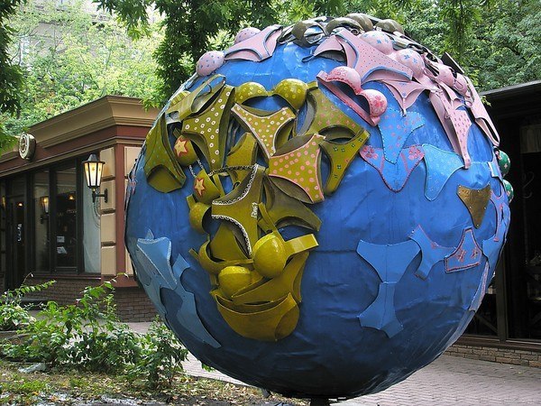 В честь Всеукраинского дня белья (да, он существует) в 2010 году установили макет земного шара с налепленными на него женскими трусами и бюстгальтерами. Скульптура сделана из метала, диаметр шара — 2 метра, а вес — 300 килограммов. Скульптор объяснил, что это памятник женской красоте, которая правит миром, а женское белье такое же капризное и вычурное, как и женская сущность. Конечно, с мнением автора не все согласны. Возможно, скоро напротив этой скульптуры появится такой же шар, облепленный мужскими семейниками и боксерами.