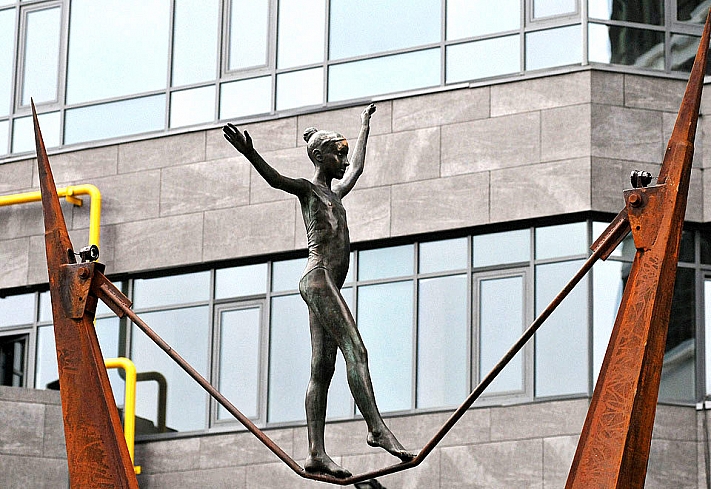 Инсталляция установлена в 2013 году возле ЖК PecherSKY Luxury Apartments и изображает гимнастку на канате. Особенность работы в том, что при ветре канат раскачивается, и бронзовая канатоходка будто и правда пытается удержать равновесие. Но автор уверил, что никой ветер не собьет его работу. Лидаговский объяснил, что скульптура символизирует баланс человека с окружающей средой в динамичном и неустойчивом мире.