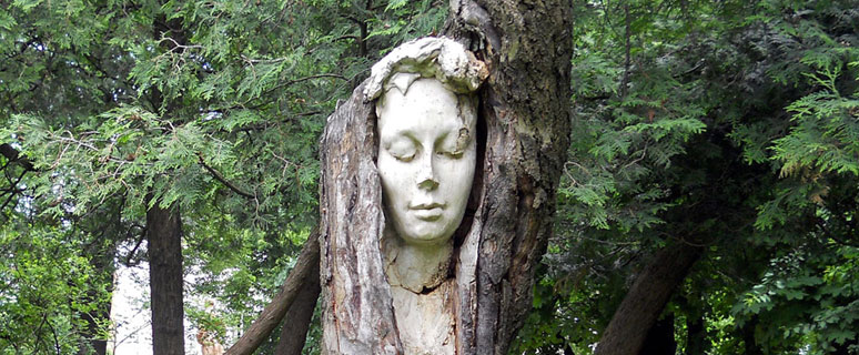 Этот тоже относительно новая композиция — 2009 года — была создана с намеком на Мавку, главную героиню драмы Леси Украинки «Лісова пісня». На улицах Киева часто можно встретить скульптуры, созданные в деревьях, которые подлежат сносу. Дерево, в котором появилась Мавка, не засохло, но нуждалось в лечении, и таким оригинальным способом заврачевали его рану. Насколько это помогло дереву, сказать не можем. Но то, что это выглядит мрачно и пугающе, отрицать нельзя.