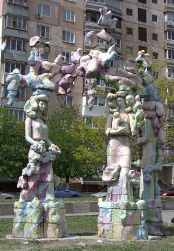 Когда Виноградарь только построили, его украсили яркими и необычными скульптурами из керамики — все от одного автора и в одном стиле. Сначала работы появились в детских садах и на игровых площадках, так как изображали сказочных героев или разных зверушек. Потом авторка сделала большие и немного странные скульптуры, их разместили в разных дворах района. «Весна» — это три огромные девушки в цветах и с непонятными штуками на голове. Из всех работ эта скульптура сохранилась лучше всего, хотя тоже не видела реставрацию с 1980-х годов и скоро совсем разрушится. Их создательница сейчас живет в США и ничем не может помочь своим умирающим творениям. Если бы их обновили, то Виноградарь точно стал более популярным районом среди жителей и гостей Киева.