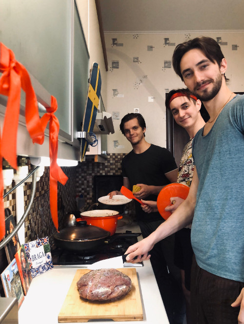 Уборку постоянно откладываю. Зато люблю готовить и вкусно поесть, поэтому готовка теперь стала пунктом ежедневной программы. Сегодня — куриные крылья в меду, с перцем чили и соевым соусом, завтра — свинина, запеченная в рукаве, на очереди сом. С вкусняшками справляюсь просто — ем их каждый день. Мне трудно набрать вес, тем более что до начала карантина был очень насыщенный график, из-за чего со своих 72 килограммов сбросил до 68,5 — при росте 188. И только сейчас снова вернул свой вес. Так что набрать немного сверху я только за.