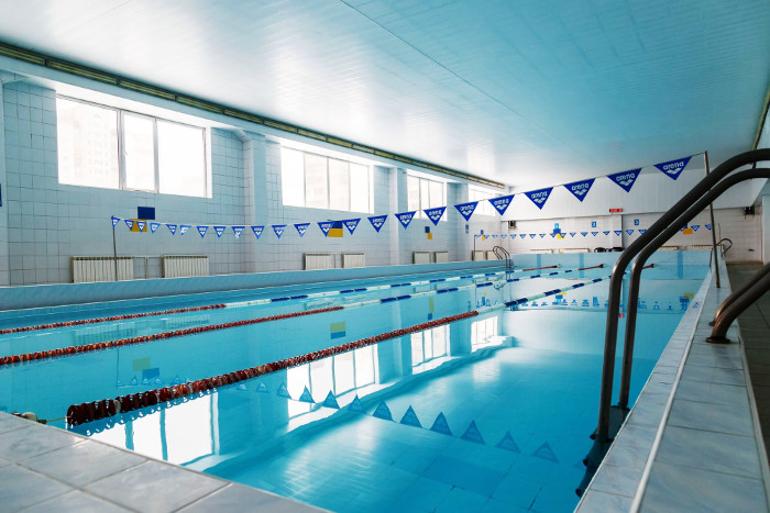 Большой и удобный бассейн прямо в центре Киева. К услугам пловцов — 2 спортивных бассейна (20 и 25 метров) по 3 и 6 дорожек соответственно. Также есть 12-метровый детский бассейн и «лягушатник» для самых маленьких.
