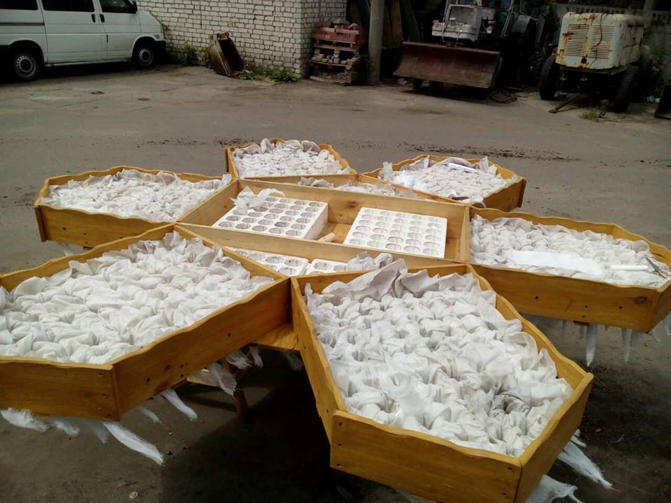 Для створення плаваючою клумби відмінно підійдуть пластикові тази, овочеві ящики, сітчасті контейнери, чи можна змайструвати підставу із звичайних дощок. В нашому випадку зроблено дерев’яний каркас, в середину якого влаштовано касети з пінопласту ( 16 шт розміром 60*40 см) з підстилкою спанбонду. Для висадки квітів використано торф’яну суміш. Окрім того, закріплено гніт (тканина, що добре вбирає вологу) для кращої подачі води до квітів.