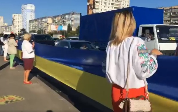 23 августа в День государственного флага на киевских улицах города развернули самый большой флаг страны длиной в 2700 метров. Каждая 100-метровка символизировала один год независимости. Разворачивали полотнище вдоль проспекта Николая Бажана от улицы Ларисы Руденко до Харьковской площади больше полутысячи человек при помощи автомобиля с установленной на нем огромной катушкой.