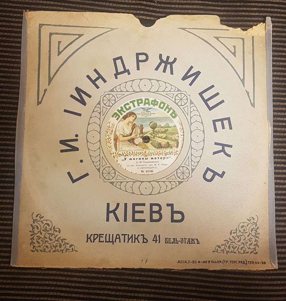 Платівка фабрики «Екстрафон» — експонат колекції Роса Моса. У цієї фабрики цікава історія: київський купець Ігнатій Індржішек добре розбирався в музиці та звукотехніці, мав на Хрещатику магазин музичних інструментів та одним з перших у Російській імперії облаштував студію звукозапису. Обладнання для студії купець привіз з Німеччини.