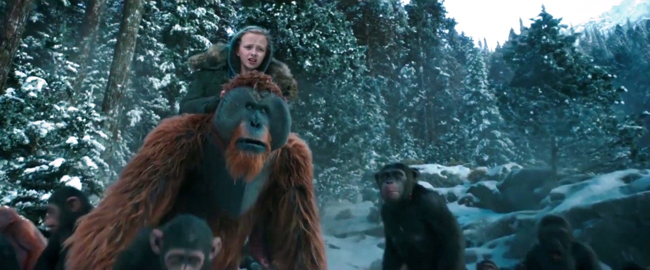 Противостояние людей и высокоразвитых обезьян продолжается в новом фильме “Планета обезьян: война”. У первых полно огнестрельного оружия, гранат и техники, а у вторых — лишь копья и стрелы. Вот только вирус, изначально выведенный учеными для борьбы с болезнью Альцгеймера, делает приматов умнее, а людей слабее. Так что теперь сложно сказать, на чьей стороне преимущество. Предводитель обезьян Цезарь никогда не хотел этой войны и пытался договориться с людьми о разделе территории. Но в конце прошлой части Кобе — обезьяне, которая пыталась убить Цезаря и занять его место, удалось развязать конфликт с людьми. Цезарь же не может доказать, что войну начинал не он, и ему приходится принимать бой.